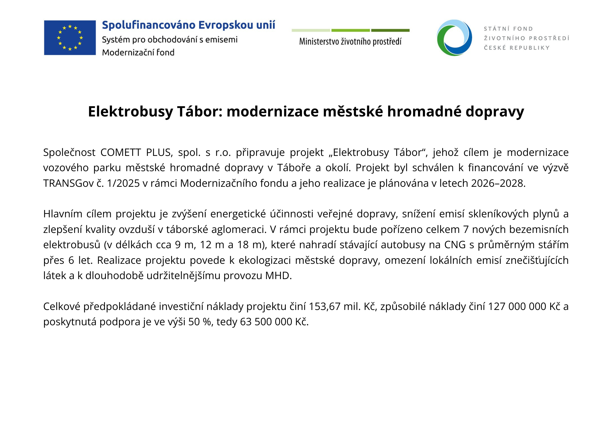 Elektrobusy Tábor: modernizace MHD
